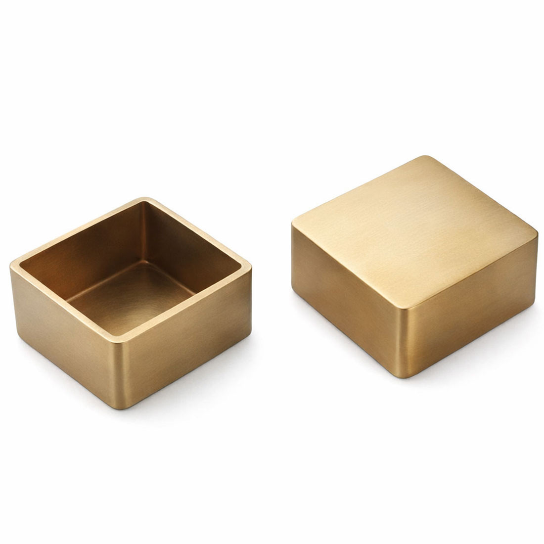 Cette boîte carrée est réalisée en laiton massif, avec une finition vernie qui lui confère une teinte dorée subtile, lumineuse et élégante. Ses dimensions de 50 × 50 mm pour une hauteur de 20 mm en font un objet compact, raffiné et polyvalent. L’épaisseur des parois est de 1.5 mm, garantissant robustesse et durabilité. Les arêtes sont légèrement adoucies pour un rendu visuel harmonieux et une prise en main agréable.