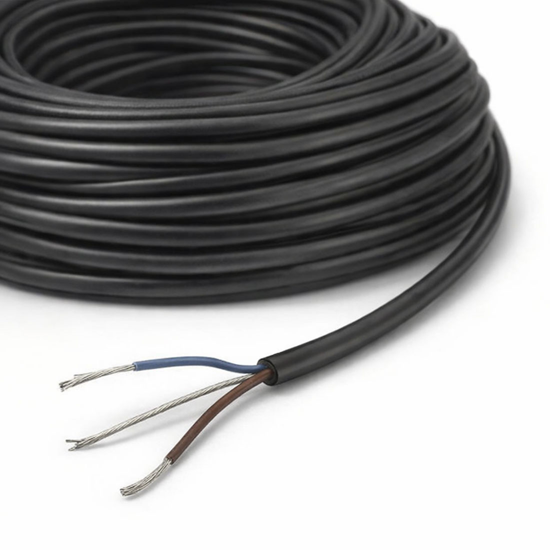 Atout principal : grâce à l’isolation en PTFE (Téflon), ce câble conserve un diamètre extérieur inférieur à 5 mm (4,96 mm) tout en offrant une section de 0,75 mm² par conducteur. Idéal pour luminaires suspendus, installations décoratives et passages dans des espaces réduits.
