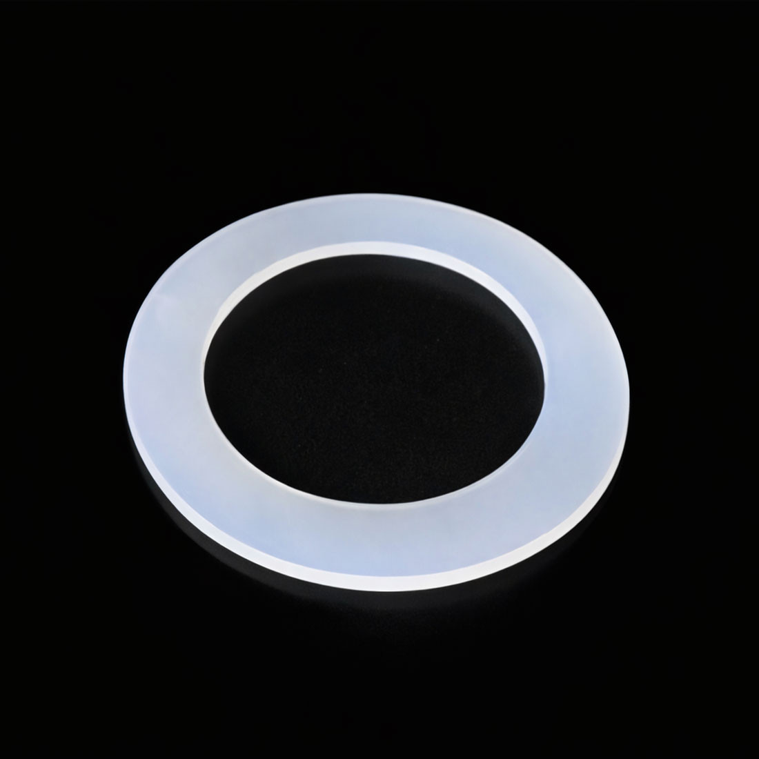Rondelles en silicone transparent diamètre intérieur 40 mm et diamètre extérieur 59 mm, épaisseur 2 mm.